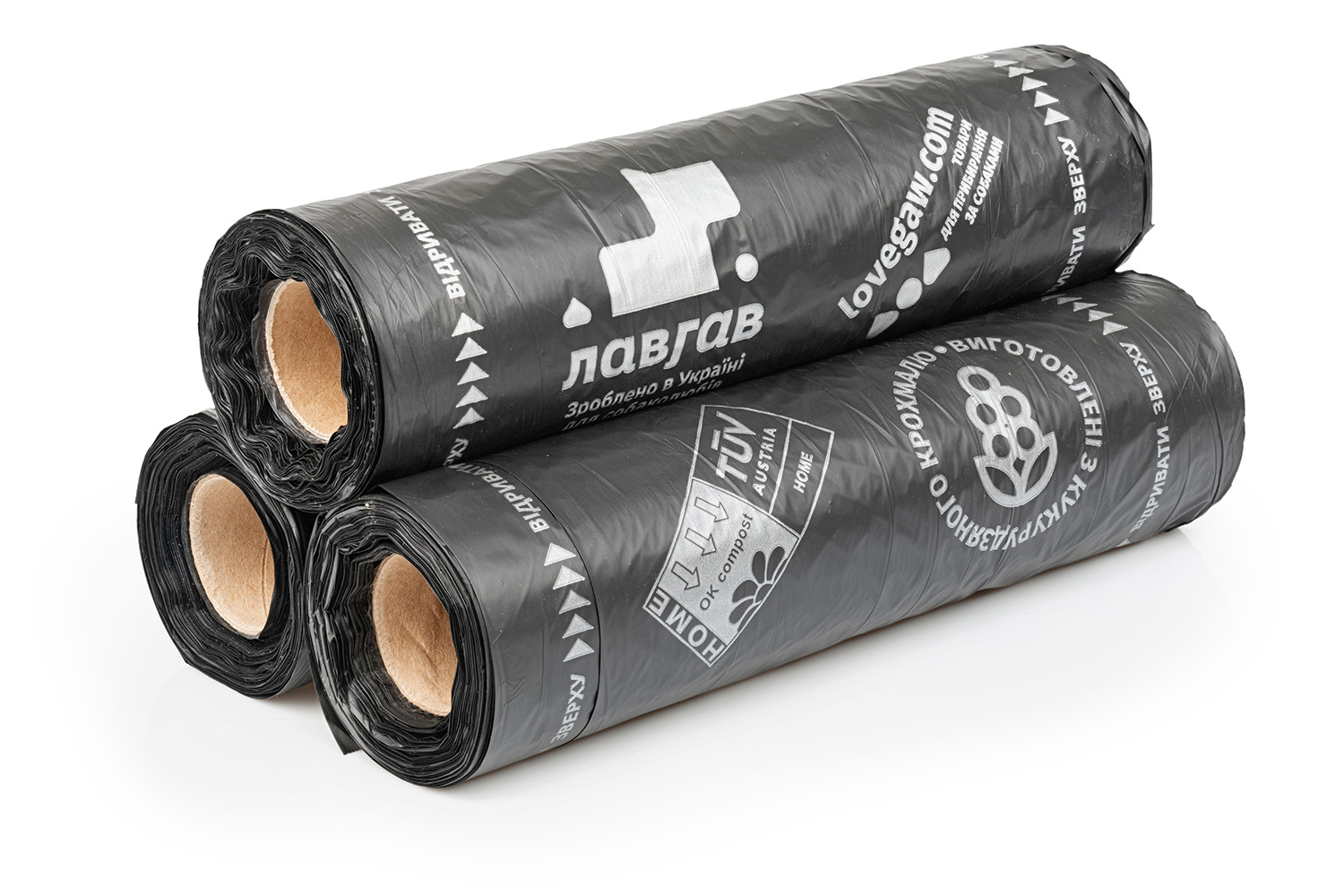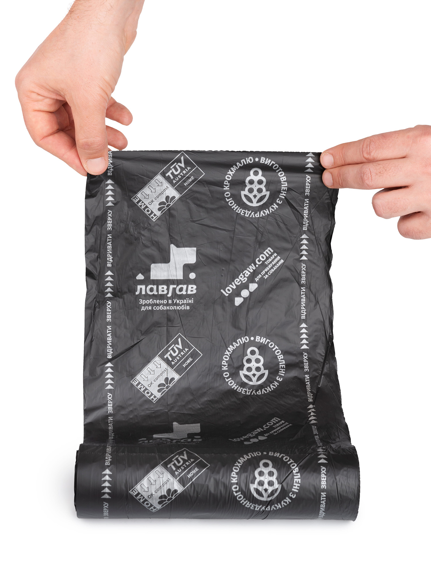 Повністю екологічні кукурудзяні ЕКО-пакети для вигулу собак малих і середніх порід "ЛавГав" розкладаються протягом 45 діб. Придатні для домашнього компостування.