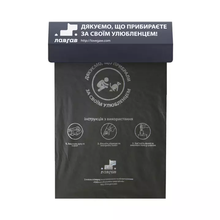 Фіксатор виконується в технологічних зеленому і сірому кольорах. До комплекту входить набір кріплення та 100 шт. Універсальних пакетів ЛавГав.